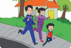 Memeragakan cara berpamitan pergi ke sekolah dan
